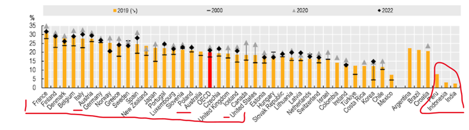 Chart 3: Public social expenditure as a percentage of GDP, in 2000, 2019, 2020 and 2022