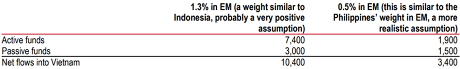 Table 1: Estimated flows into Vietnam following FTSE reclassification (US$m)