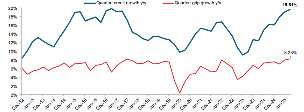 Vietnam’s macro story is especially attractive. In the short term, the economy remains buoyant. In Q3 2025, Vietnam’s GDP climbed over 8% year-over-year, one of its strongest quarterly prints in years. Meanwhile, credit growth of nearly 20% YoY is fuelling strong domestic investment and commercial activity.