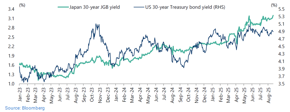 Figure 4: Rising 30-year bond yields in the US and Japan