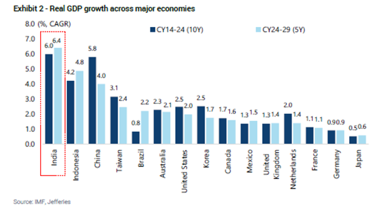 India is projected to record the fastest GDP growth among major economies over the next five years